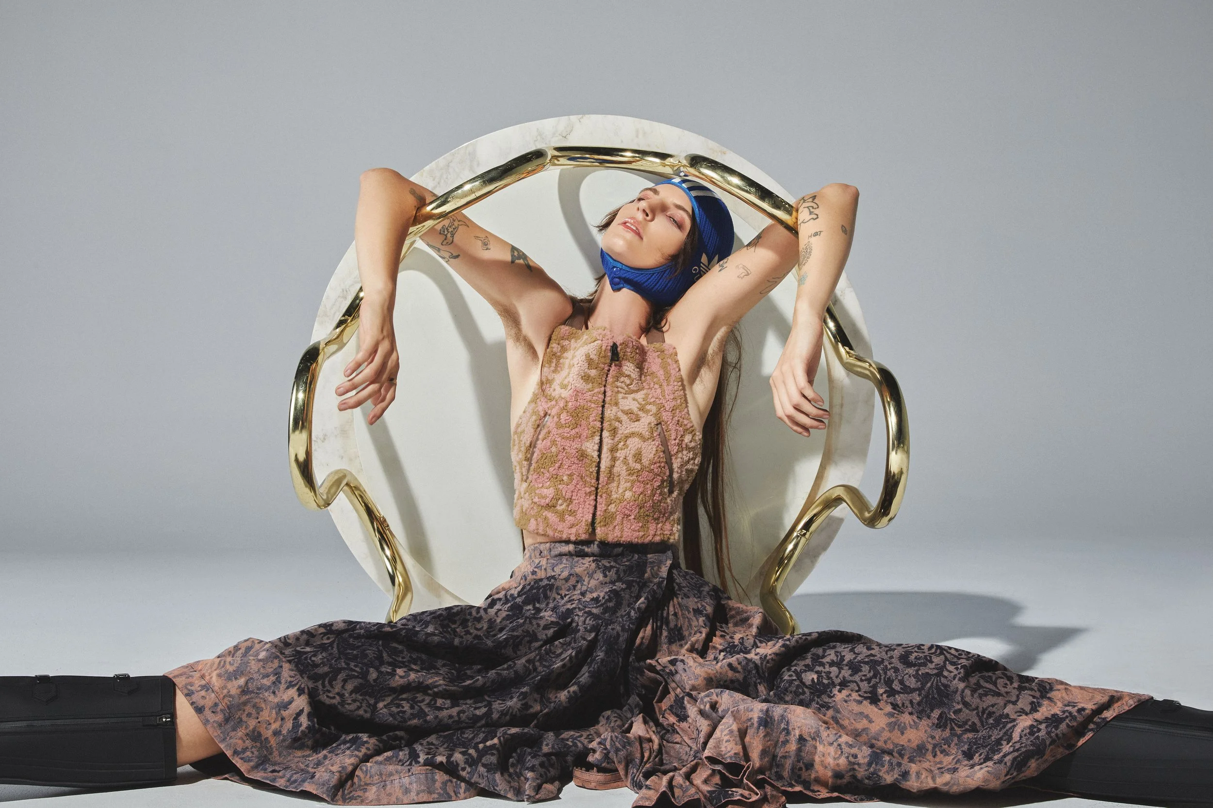 Ilana wears DIOR corset, dress, and boots and adidas x GUCCI hat.