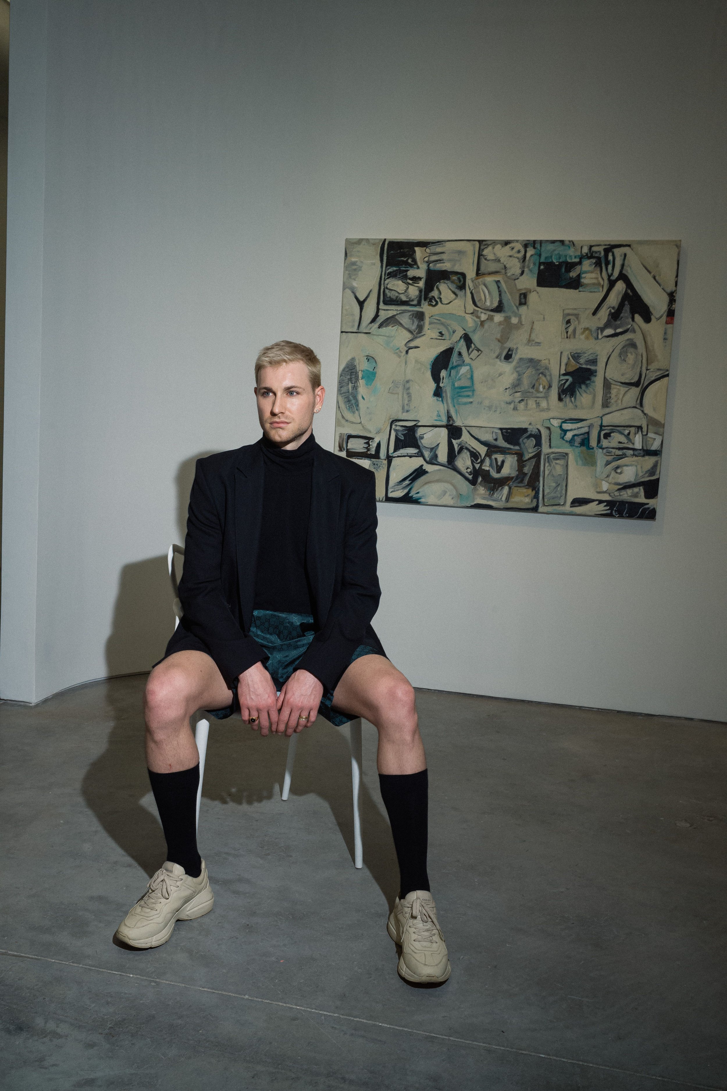 Alex DiJulio of Eric Firestone Gallery and Neo Verdun, who's this incredible photographer, have pulled together this show because they wanted to bring queer art to The Hamptons. So, this series that I'm bringing out there is my interpretation of self portraits. And it's a departure from my last show. Because with this, I really wanted to hone in and be super laser focused on what I was trying to say. With the self portraits, I found that I really wanted to examine self identity, perception, the conflict and tension between physical and psychological. And I think the easiest way to do that for the viewer, is to just put myself on display. And so I've created these personal emotional pieces that are still a bit abstract in a way, but I find that it gives the viewer the chance to see themselves in the work.